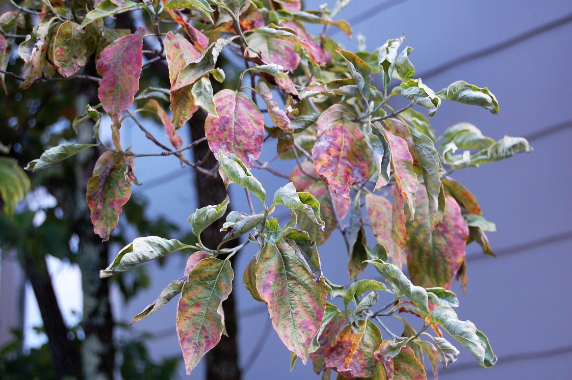 The decline of dogwoods may also be contributed to a combination of these two major issues, which causes stress to the trees. Stressed trees may exhibit smaller-than-normal leaves and have wilting leaves, pale-green leaves, early fall coloration, and an overall poor appearance. Dogwoods that are stressed because of poor cultural and environmental conditions, especially drought, are more susceptible to diseases and pest problems. Various forms of stress can lead to decline and death.
